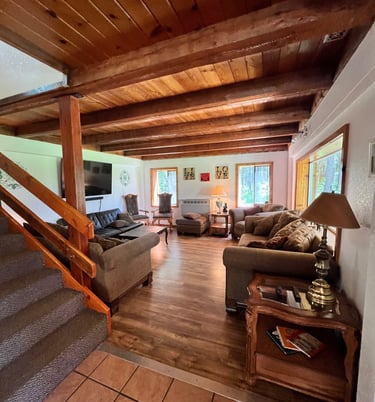 Rustic Ridge Lodge is a 3 bed 1.5 bath that sleeps 12 people. The kitchen is also fully stocked to serve everyone inside or out. We also have organic toiletries and bathing supplies for your entire party.